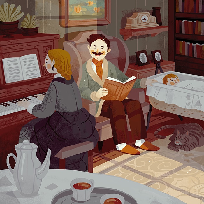 A series of illustrations exploring different rooms through time. Certain rooms were considered more important in particular eras since they had a profound impact on their inhabitants' lives.