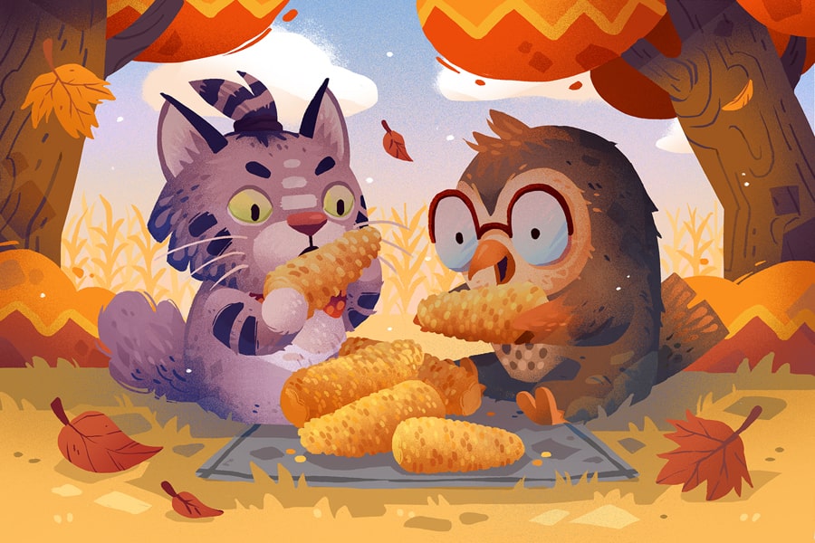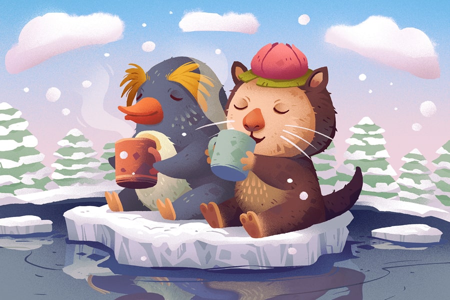 Seasonspree is a cute little computer game focusing on puzzles and time reversal. I got to illustrate the postcards that were given out during game promotions. Karen Teixeira was responsible for the adorable character design and I just got to play around with them.