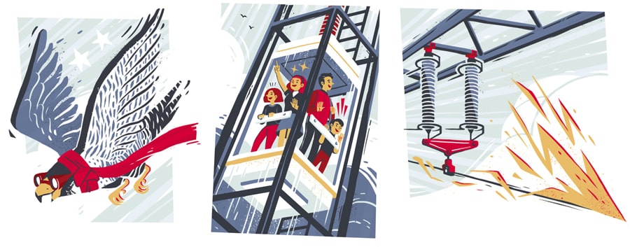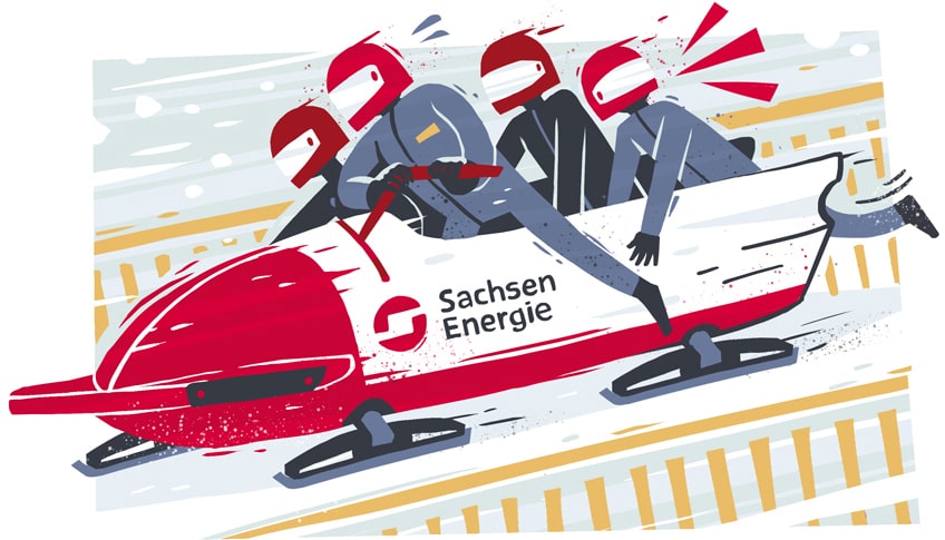 These editorial illustrations were published in Sachsen Energie's customer magazine in 2021. They are showing some of the speed records achieved in the federal state of Saxony.